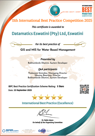 Datamatics Eswatini (Pty) Ltd is proud to have been awarded a 5-Star International Best Practice Certification at the 11th International Best Practice Competition 2025.